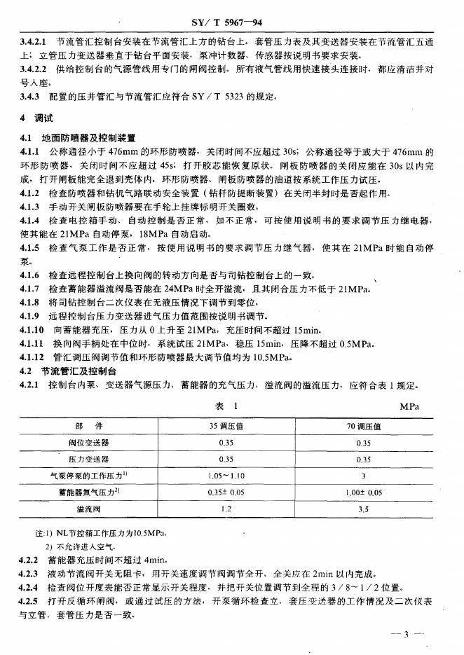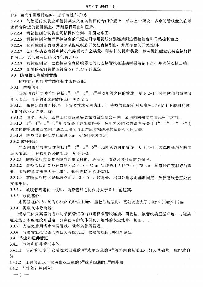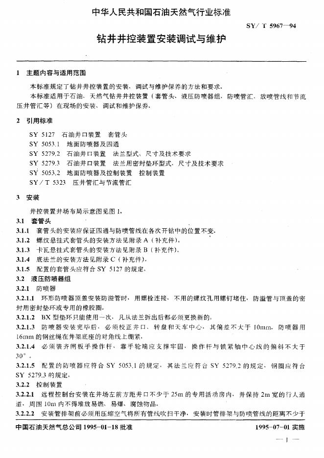 SY/T 5967-1994 钻吉井控装置安装调试与维护