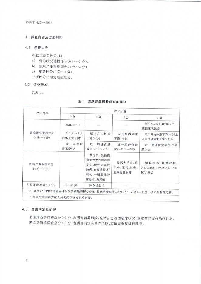WS/T 427-2013 临床营养风险筛查