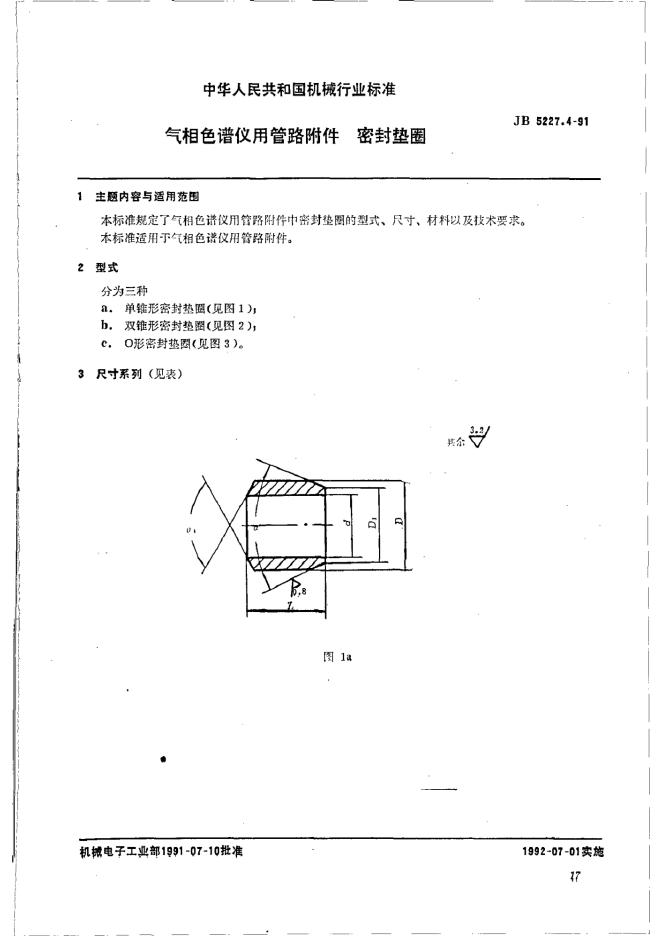 JB 5227.4-1991 气相色谱仪用管路附件 密封垫圈