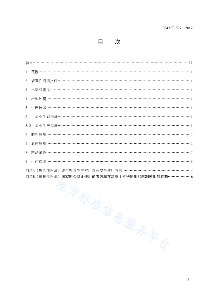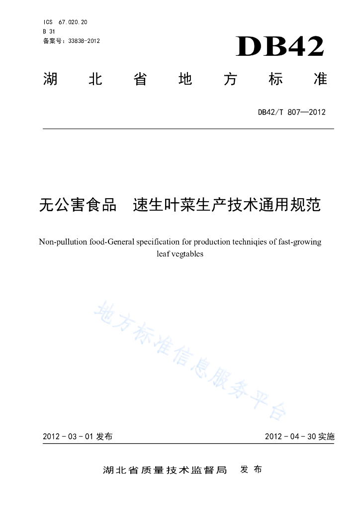 DB42/T 807-2012 无公害食品 速生叶菜生产技术通用规范