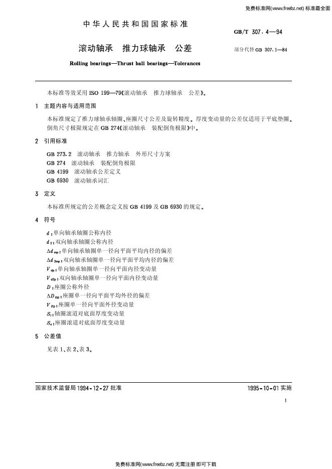 GB/T 307.1-1994 滚动轴承 向心轴承 公差