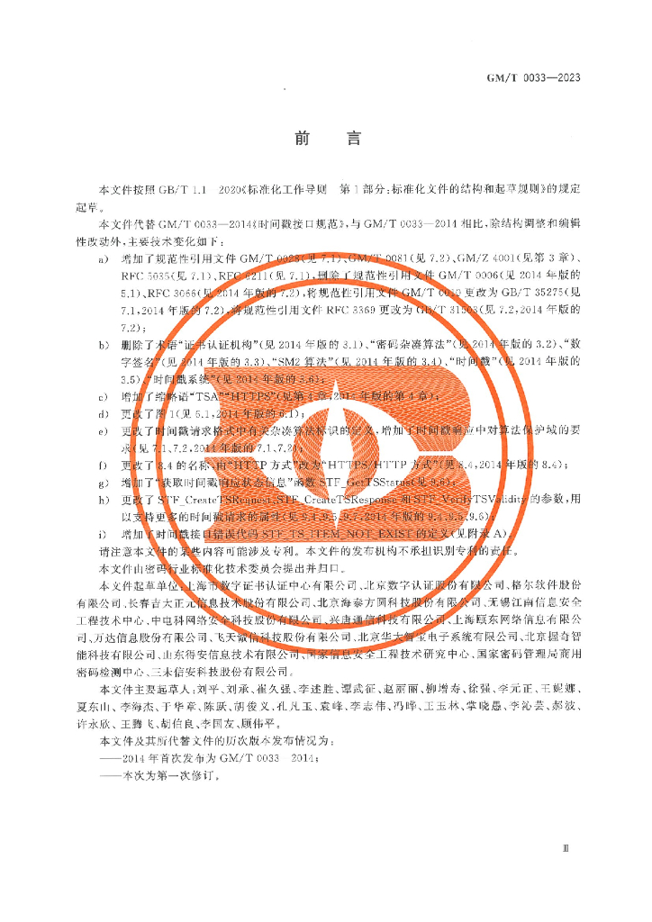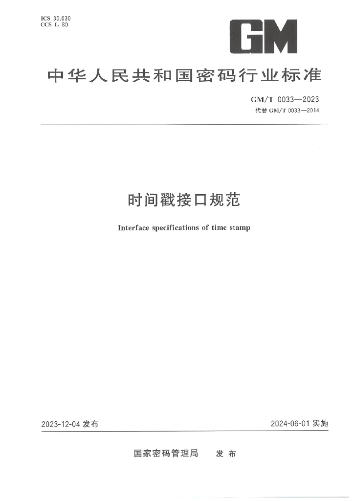 - 代替标准:GM/T 0033-2014