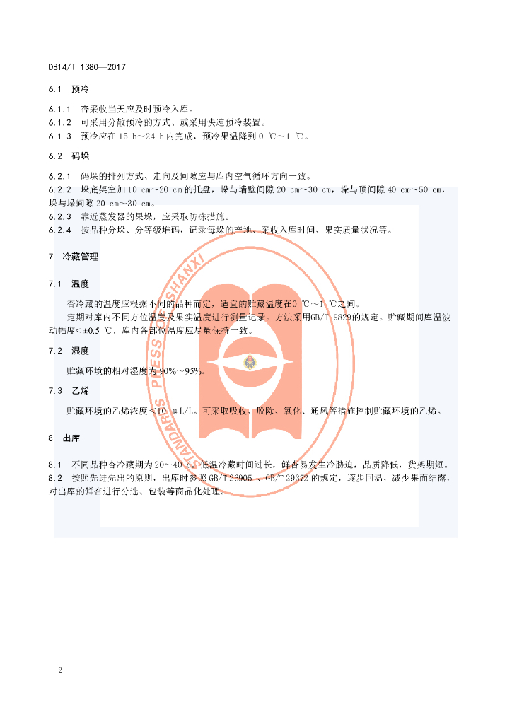 DB14/T 1380-2017 杏冷藏技术规程