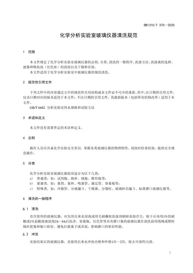 DB1310/T 370-2025 化学分析实验室玻璃仪器清洗规范