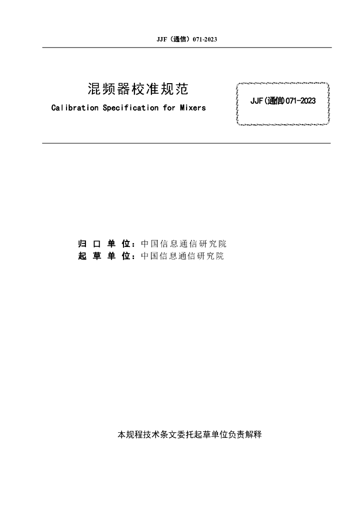 JJF(通信)071-2023 混频器校准规范(报批稿)