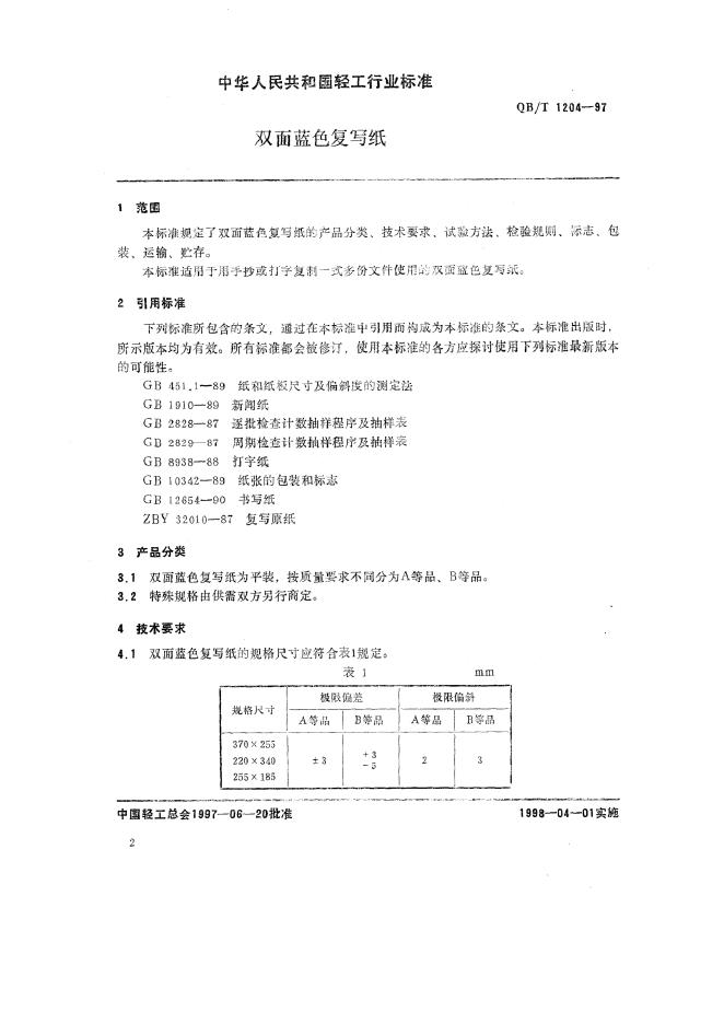 QB 1204-1991 双面蓝色复写纸