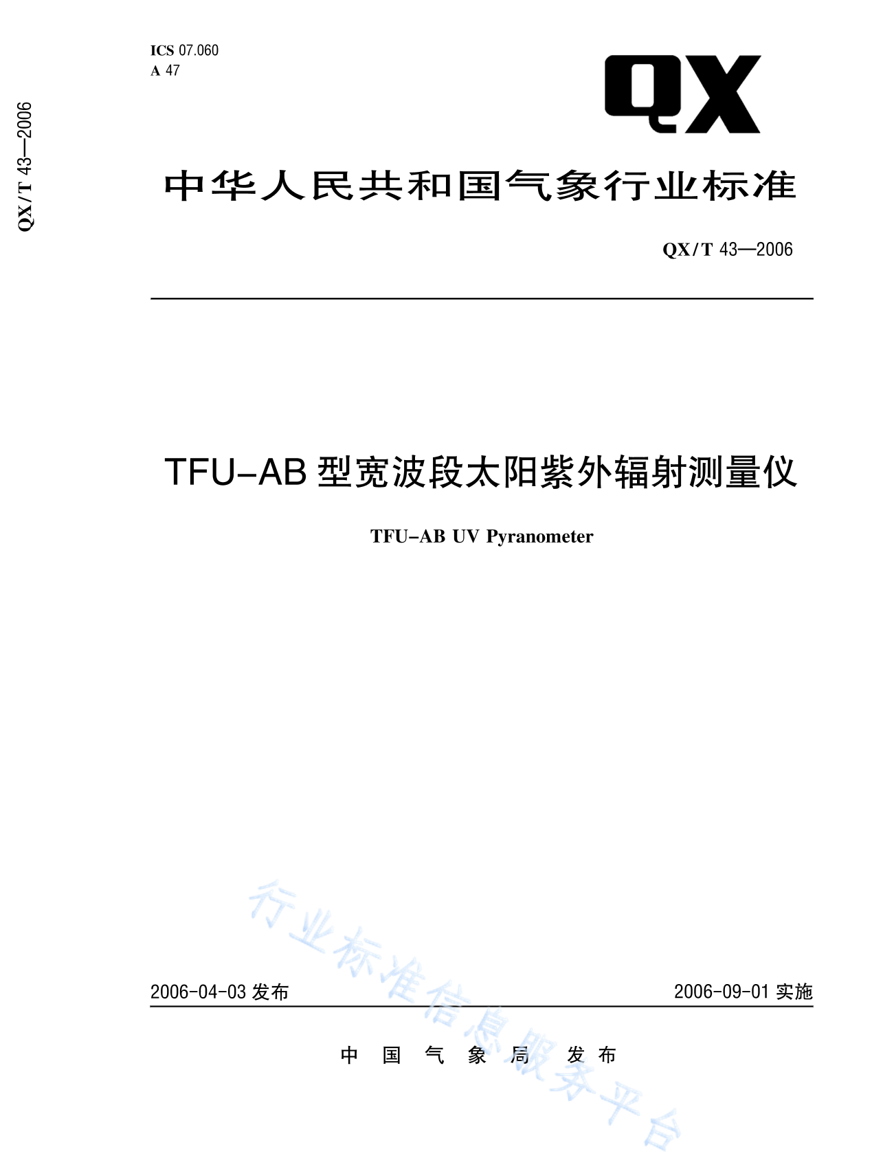 QX/T 43-2006 TFU-AB型宽波段太阳紫外辐射测量仪