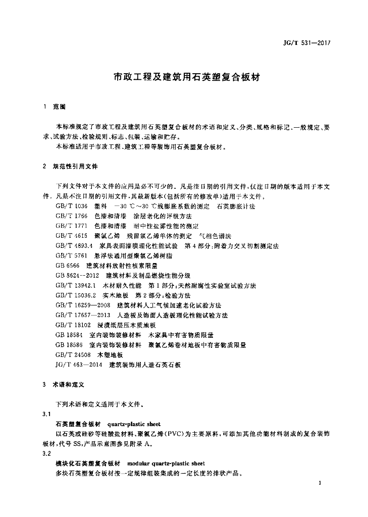 JG/T 531-2017 市政工程及建筑用石英塑复合板材