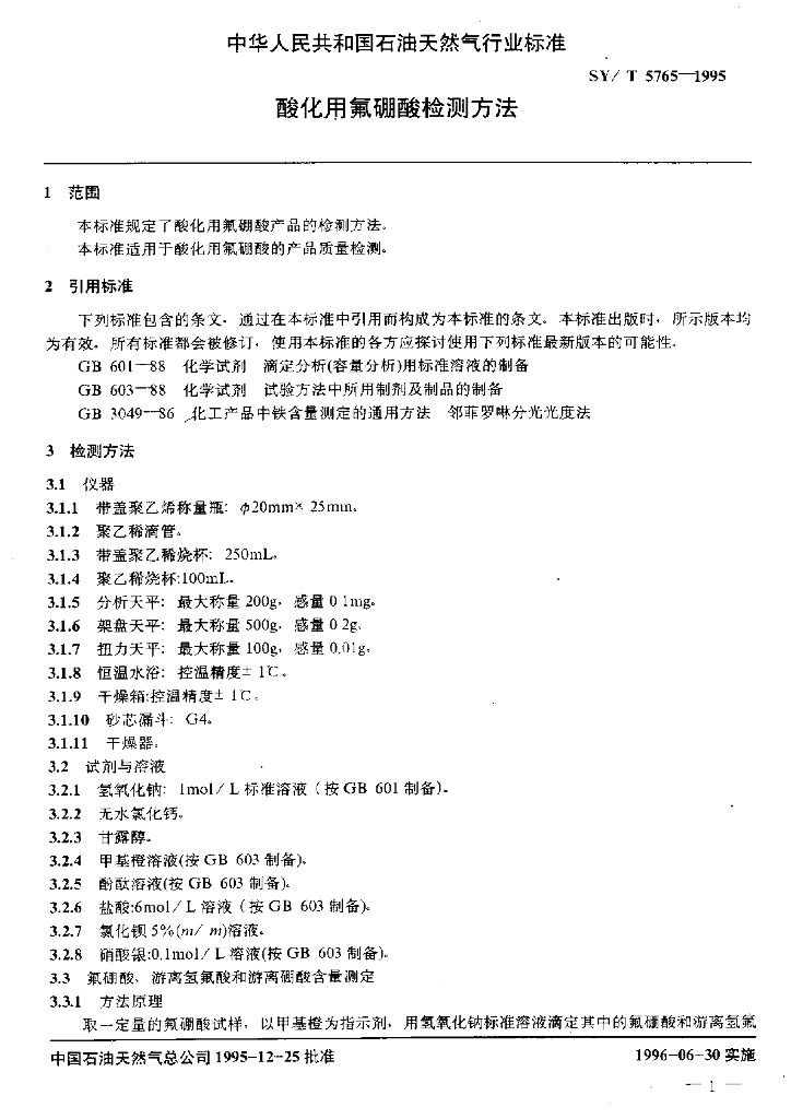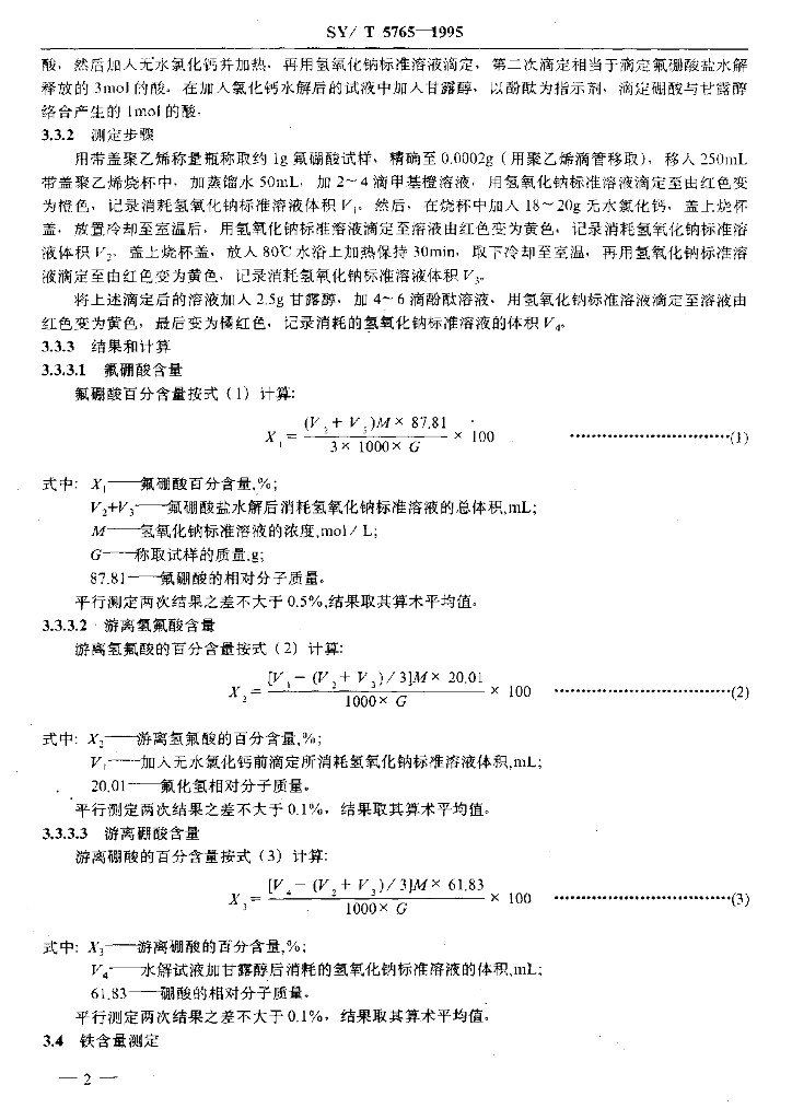 SY/T 5765-1995 酸化用氟硼酸检测方法