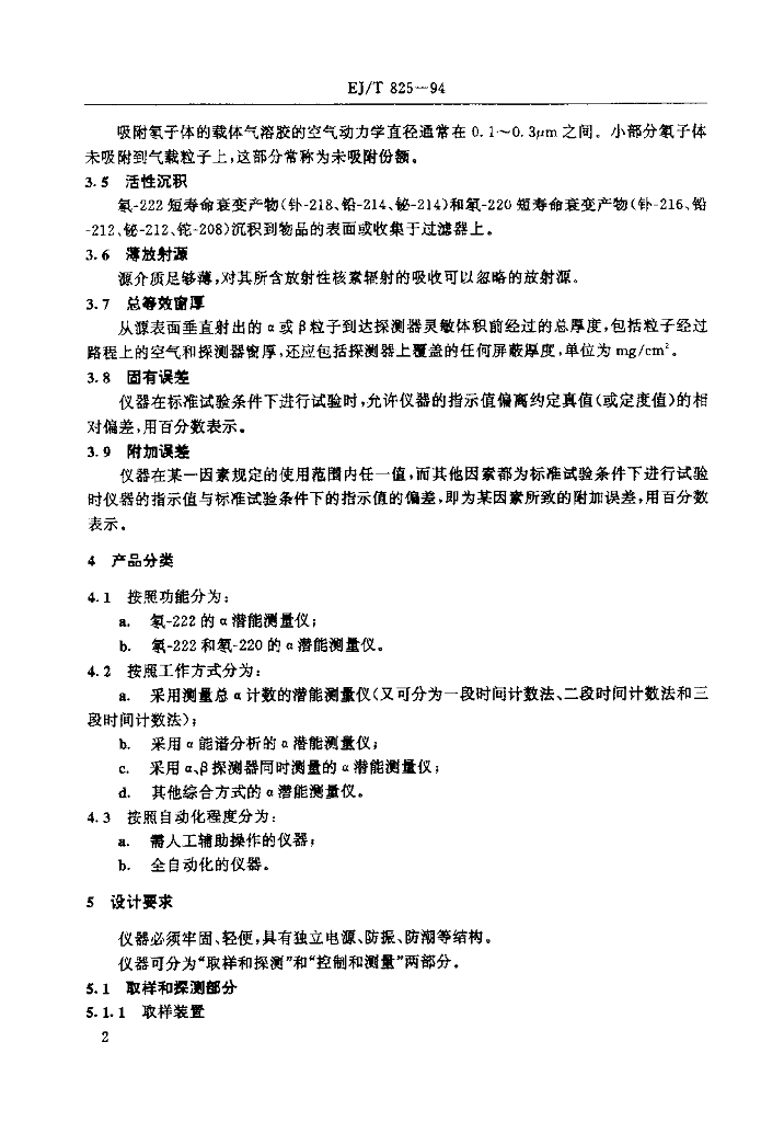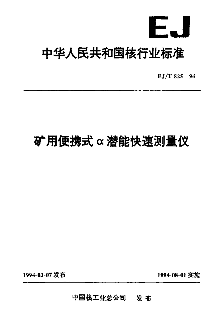 EJ/T 825-1994 矿用便携式α潜能快速测量仪