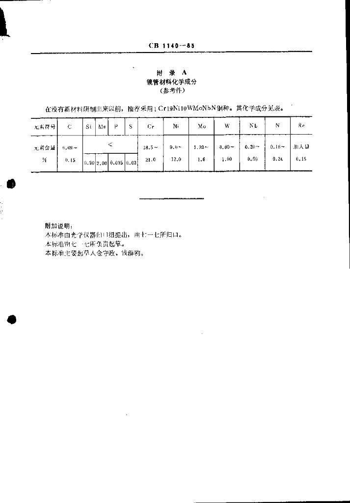 CB 1140-1985 潜望镜镜管毛坯技术条件