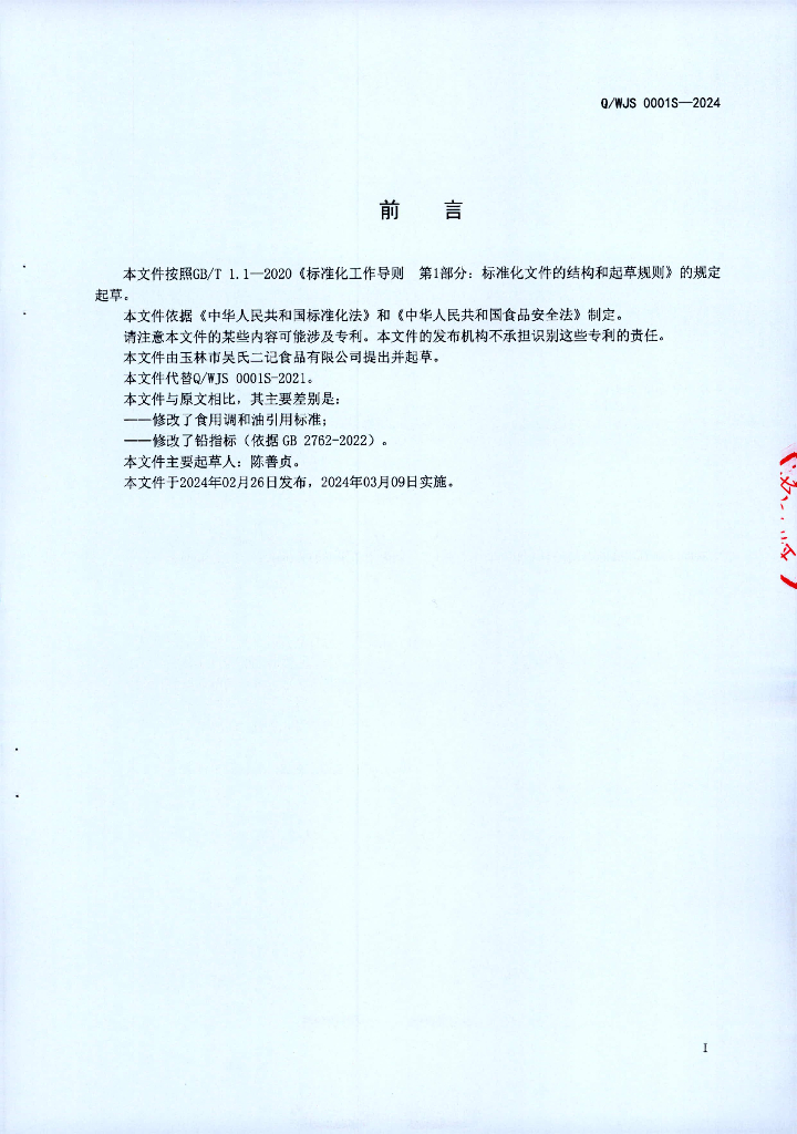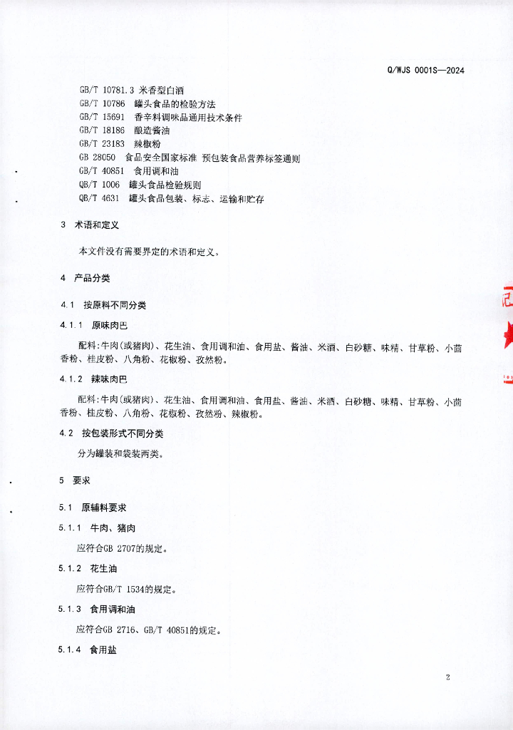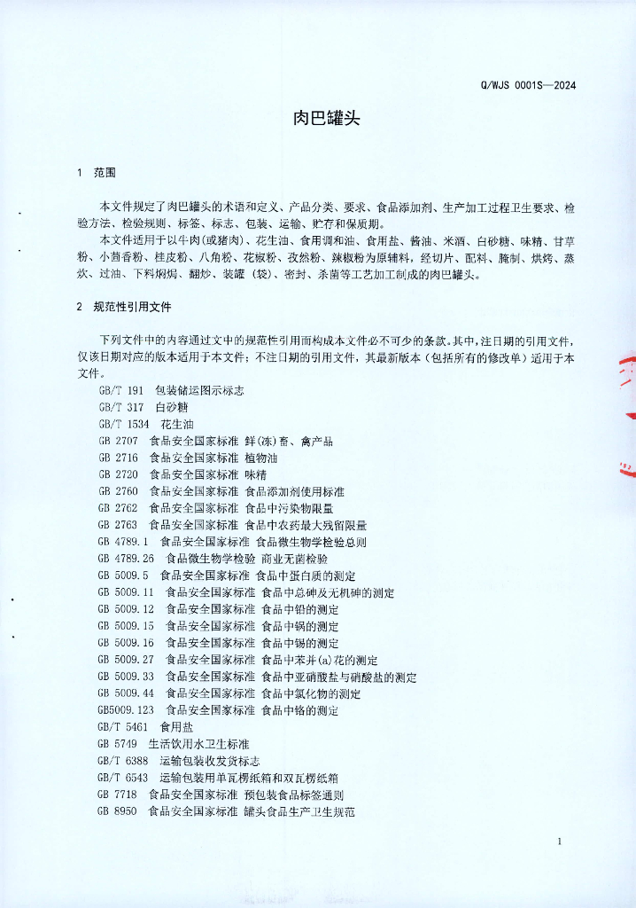 Q/WJS 0001S-2024 肉巴罐头