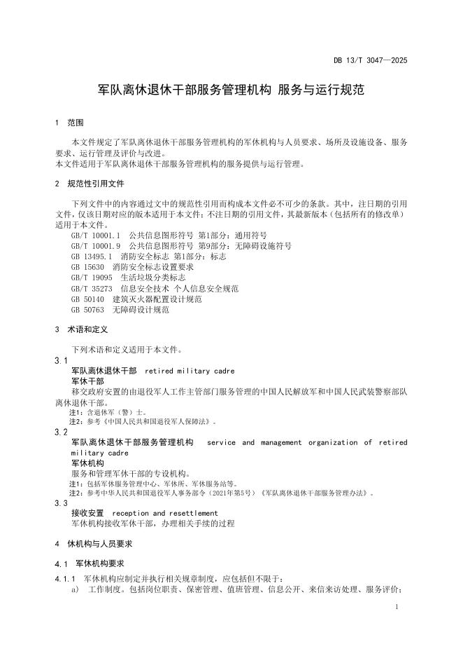 DB13/T 3047-2025 军队离休退休干部服务管理机构服务与运行规范