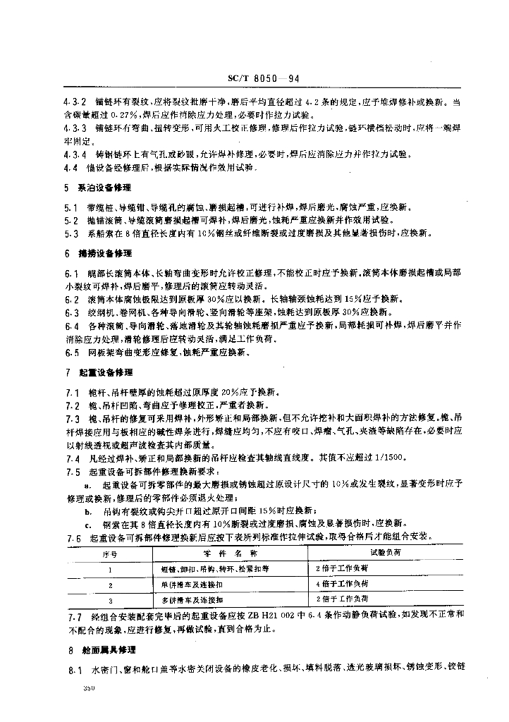 SC/T 8050-1994 渔船舾装设备修理技术要求
