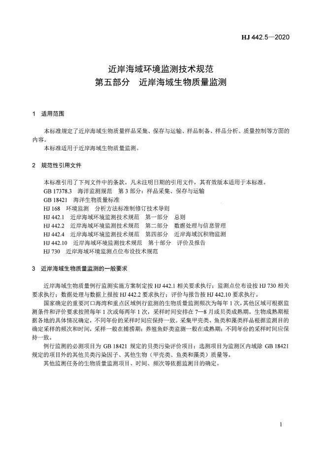 HJ 442.5-2020 近岸海域环境监测技术规范 第五部分 近岸海域生物质量监测