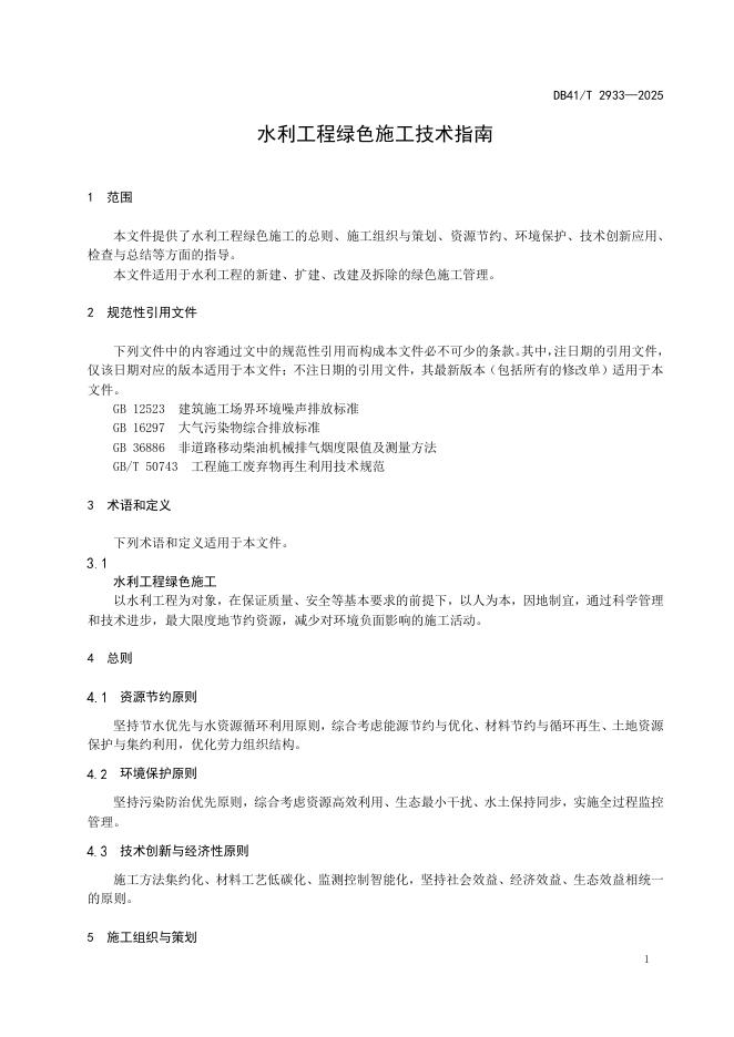 DB41/T 2933-2025 水利工程绿色施工技术指南
