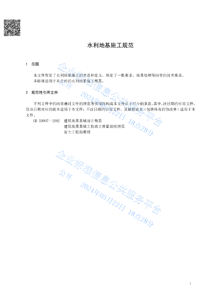 Q/LYBL 001-2024 水利地基施工规范