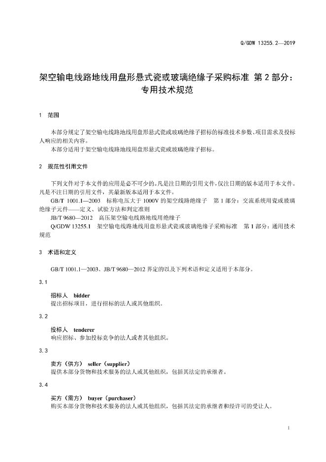 Q/GDW 13255.2-2019 架空输电线路地线用盘形悬式瓷或玻璃绝缘子采购标准 第2部分:专用技术规范