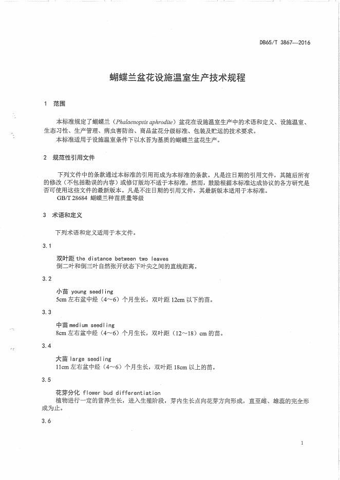 DB65/T 3867-2016 蝴蝶兰盆花设施温室生产技术规程