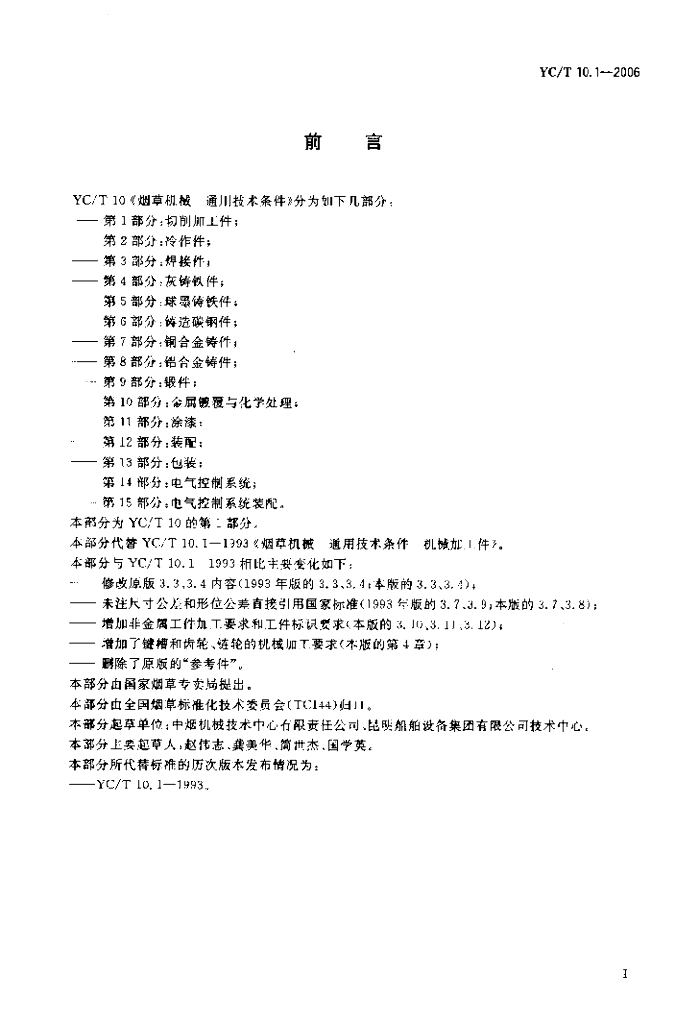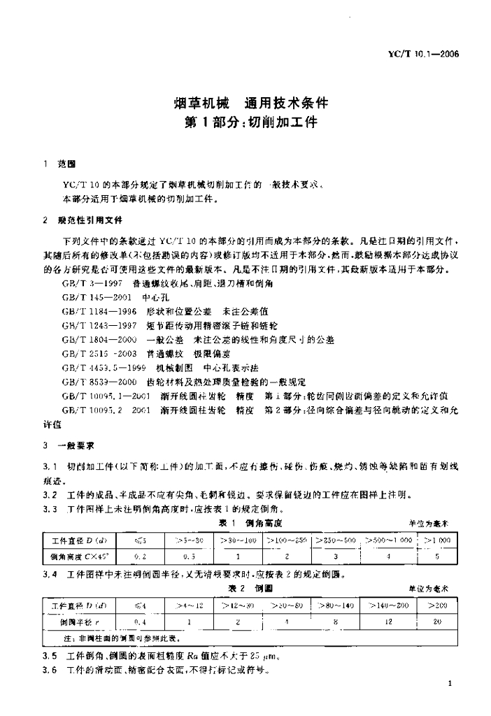 YC/T 10.1-2006 烟草机械 通用技术条件 第1部分:切削加工件