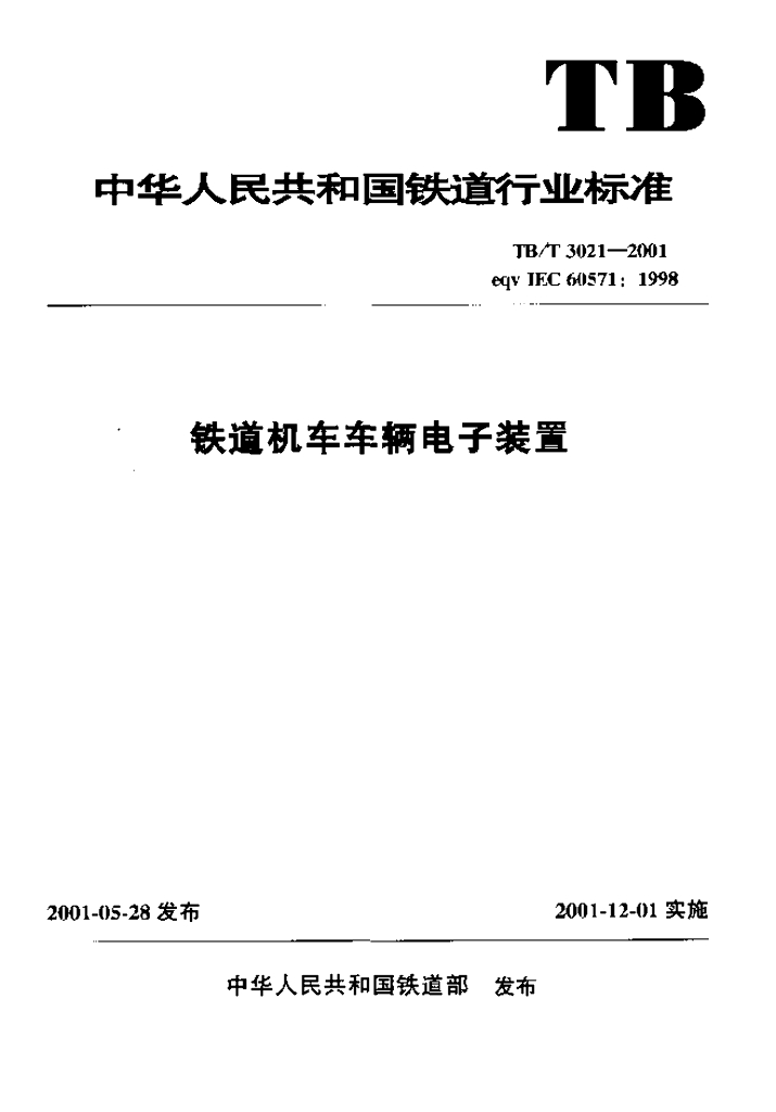 TB/T 3021-2001 铁道机车车辆电子装置