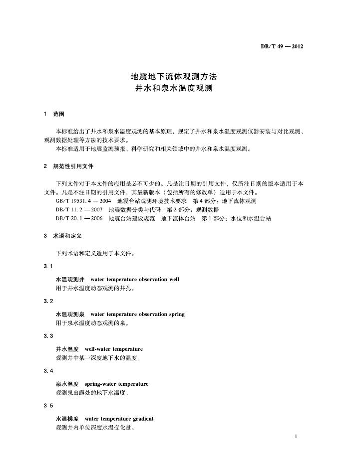 DB/T 49-2012 地震地下流体观测方法 井水和泉水温度观测
