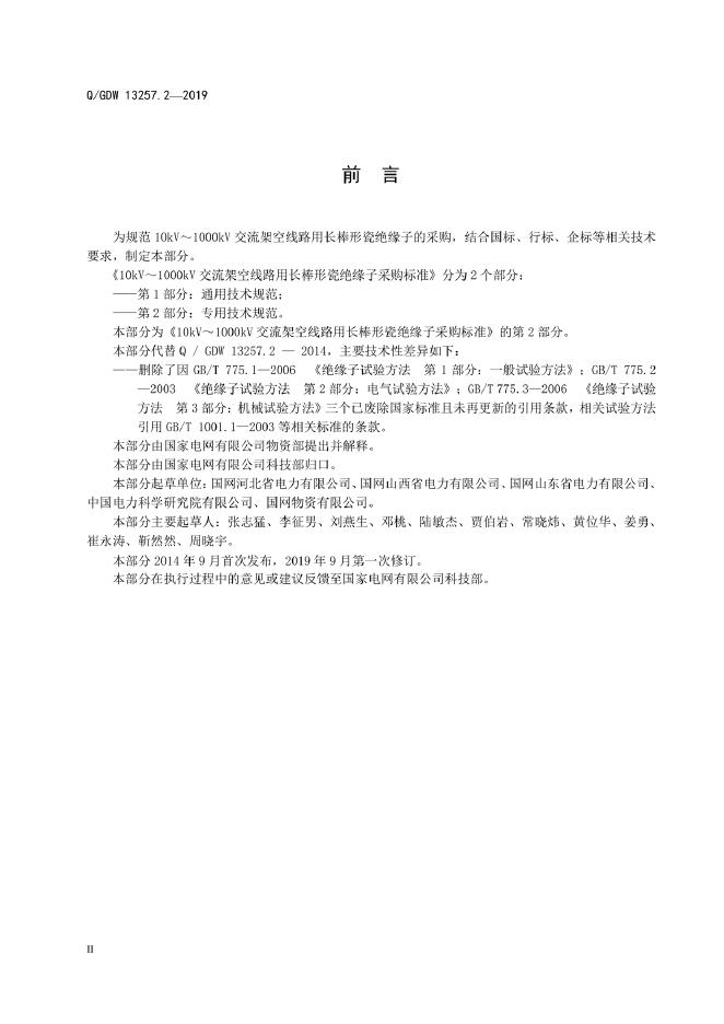 Q/GDW 13257.2-2019 10kV~1000kV交流架空线路用长棒形瓷绝缘子采购标准 第2部分:专用技术规范