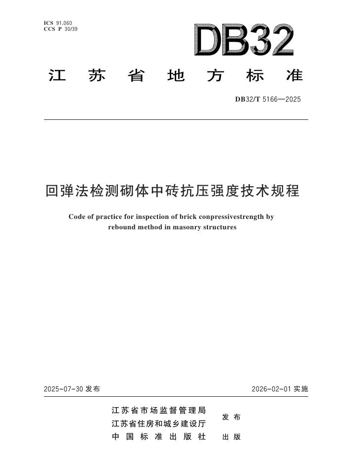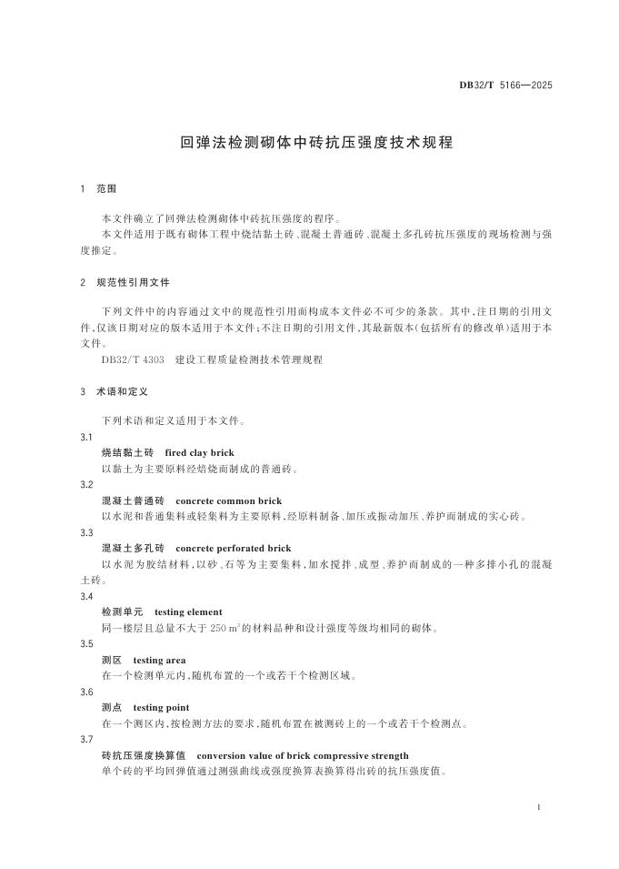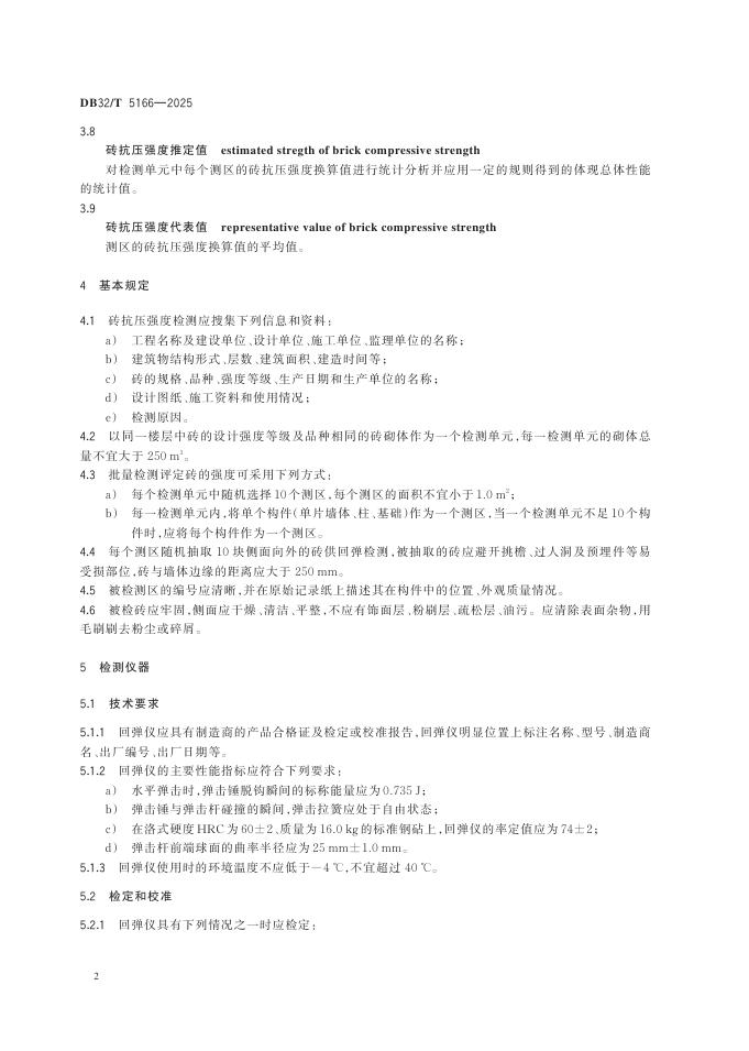 DB32/T 5166-2025 回弹法检测砌体中砖抗压强度技术规程