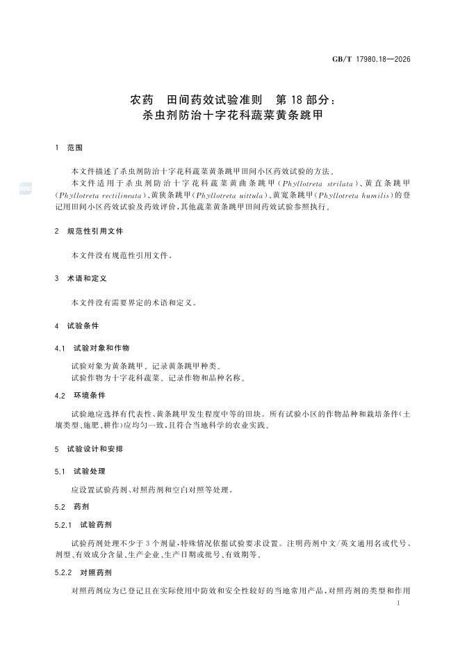 GB/T 17980.18-2026 农药 田间药效试验准则 第18部分:杀虫剂防治十字花科蔬菜黄条跳甲