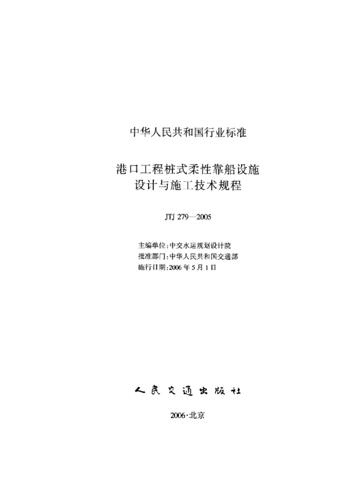 JTJ 279-2005 港口工程桩式柔性靠船设施设计与施工技术规程