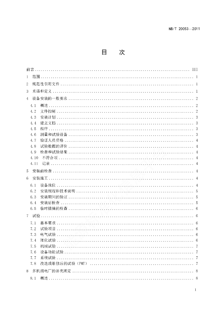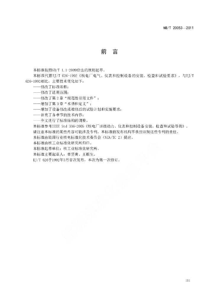 NB/T 20053-2011 核电厂安全重要电气、仪表和控制设备安装要求