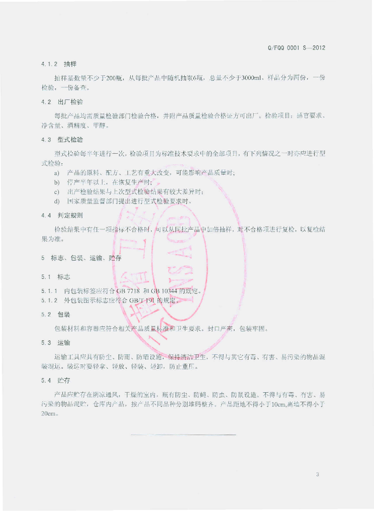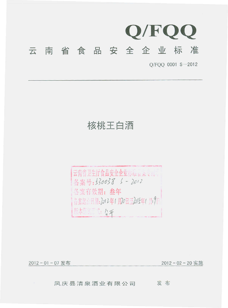 Q/FQQ 0001S-2012 核桃王白酒