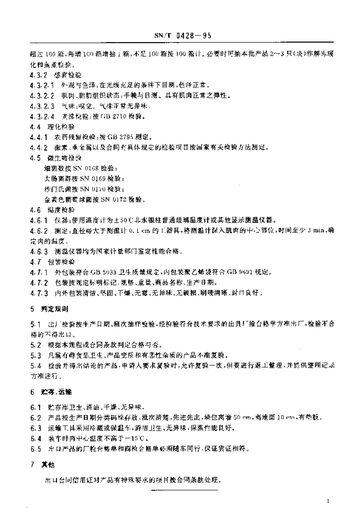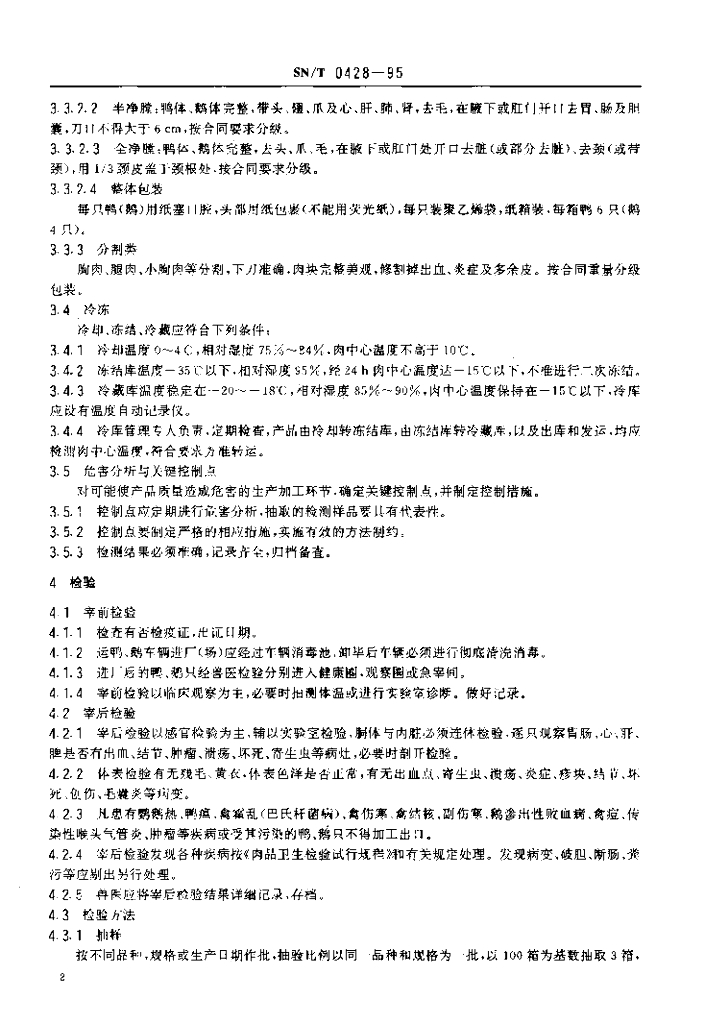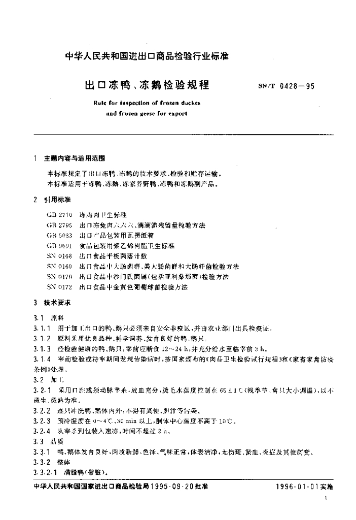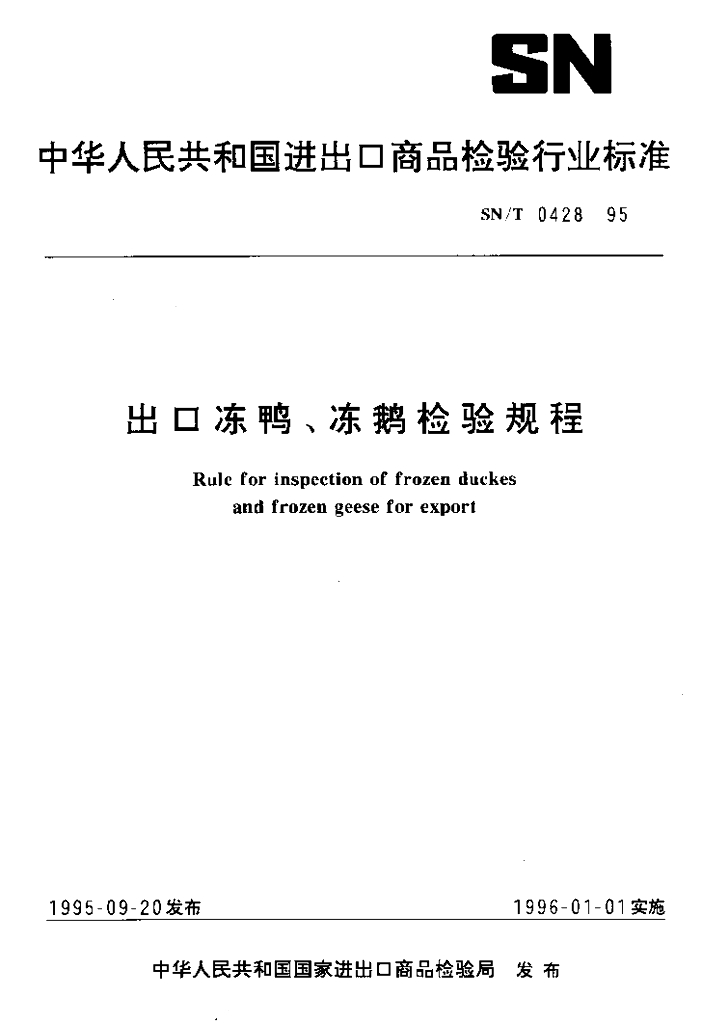 SN/T 0428-1995 出口冻鸭、冻鹅检验规程
