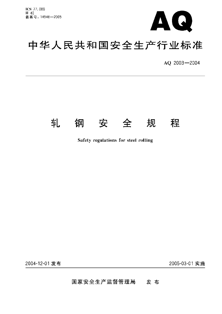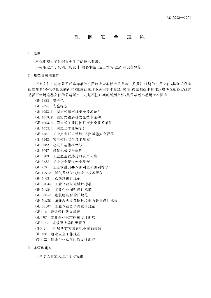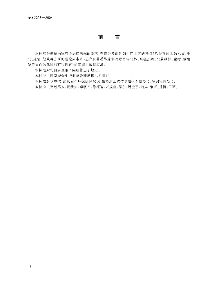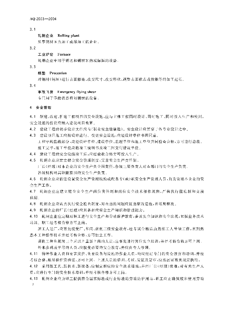 AQ 2003-2004 轧钢安全规程