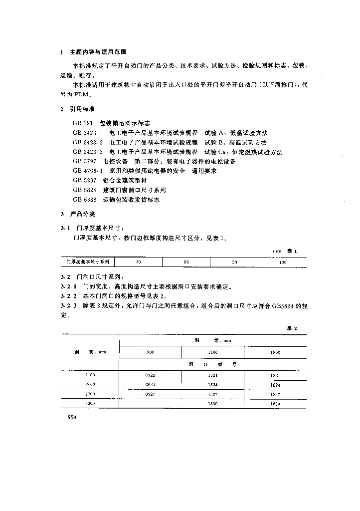 JG/T 3015.2-1994 平开自动门