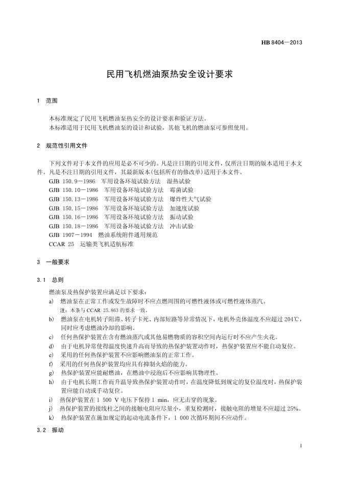 HB 8404-2013(2017) 民用飞机燃油泵热安全设计要求