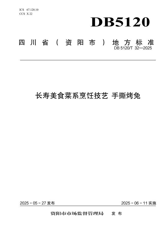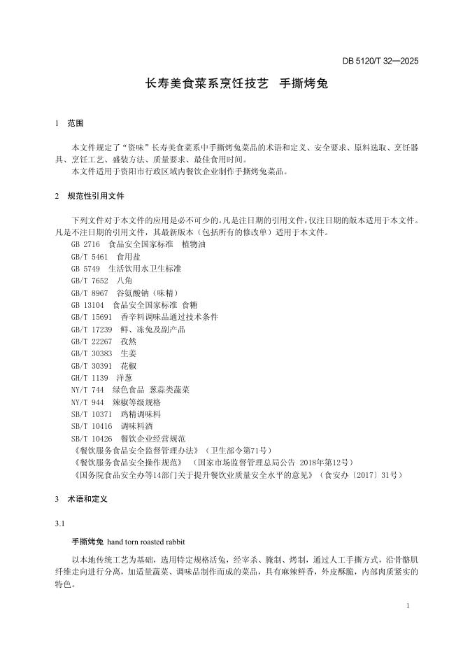 DB5120/T 32-2025 长寿美食菜系烹饪技艺 手撕烤兔