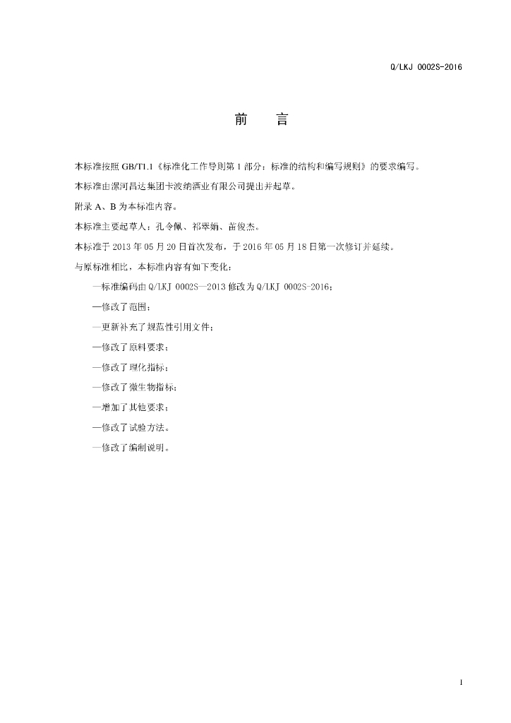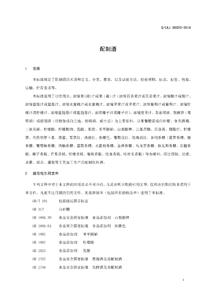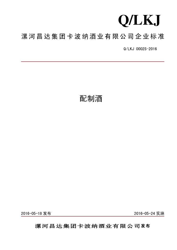 Q/LKJ 0002S-2016 漯河昌达集团卡波纳酒业有限公司 配制酒