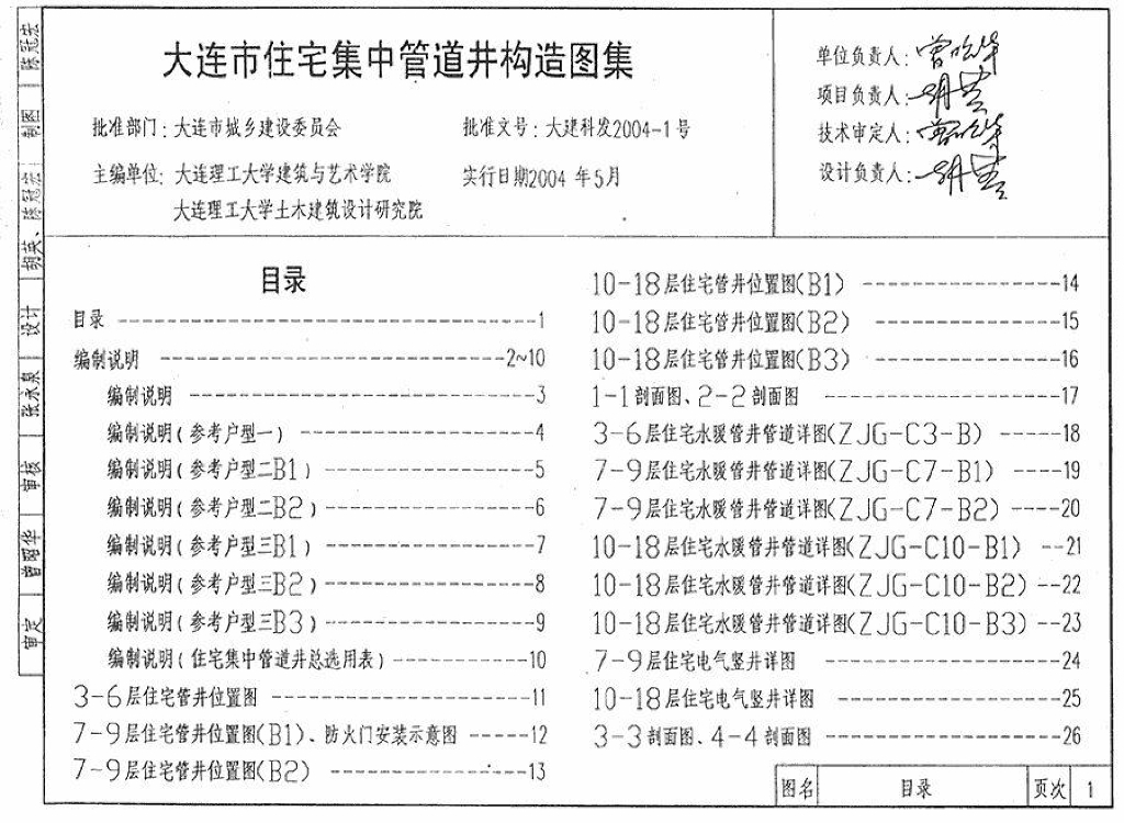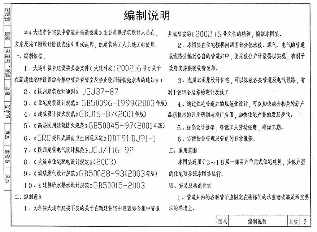 大建科图集2004-1 大连市住宅集中管道井构造图集