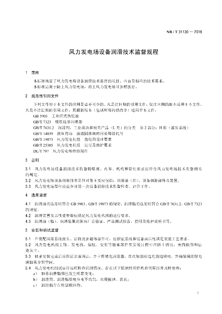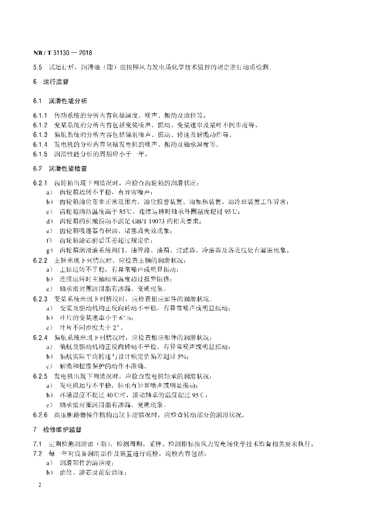 NB/T 31130-2018 风力发电场设备润滑技术监督规程