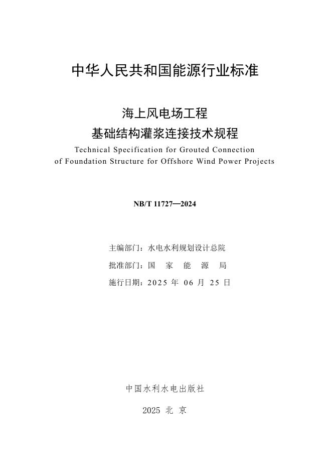NB/T 11727-2024 海上风电场工程基础结构灌浆连接技术规程
