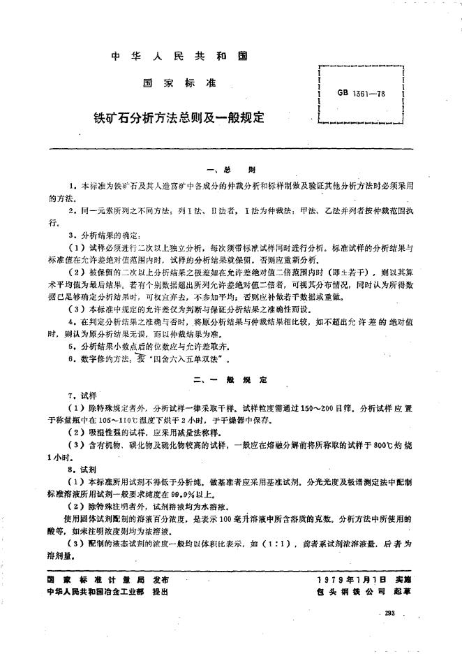 GB/T 1361-1978 铁矿石分析方法总则及一般规定
