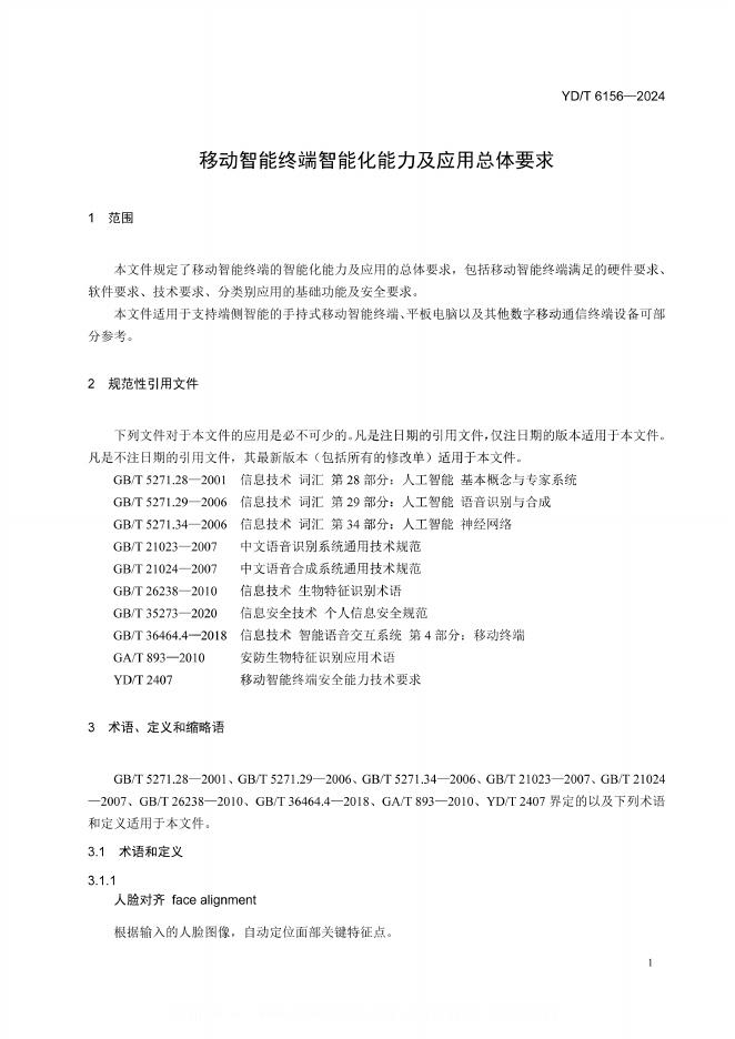 YD/T 6156-2024 移动智能终端智能化能力及应用总体要求