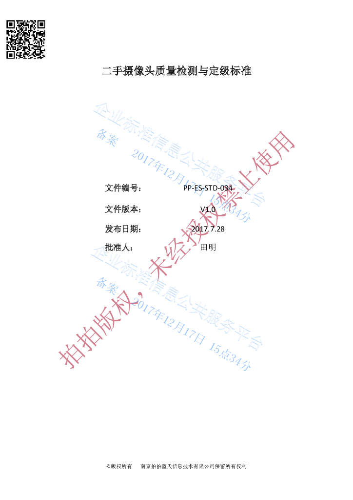 Q/DXJD3CES 034-2017 二手摄像头质量检测与定级标准