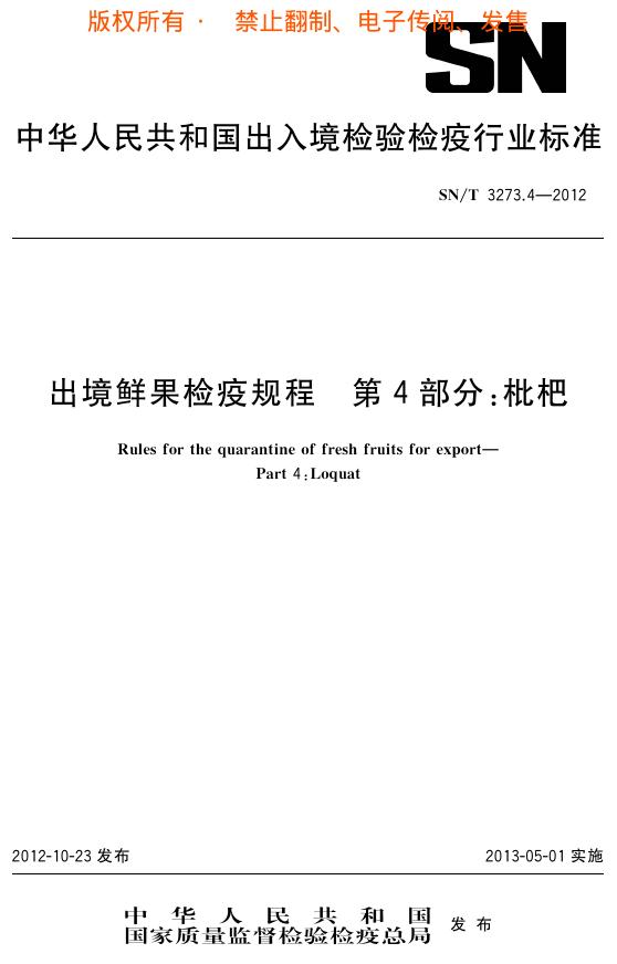 SN/T 3273.4-2012 出境鲜果检疫规程 第4部分:枇杷