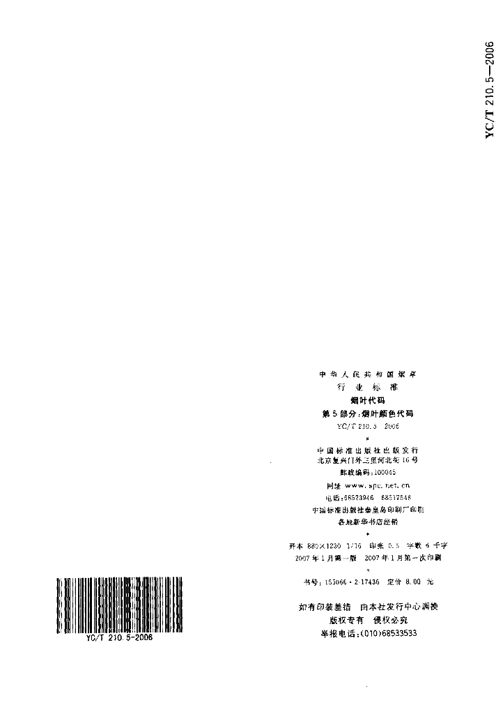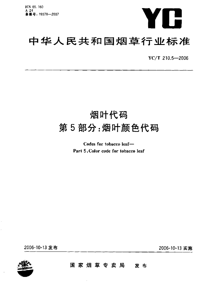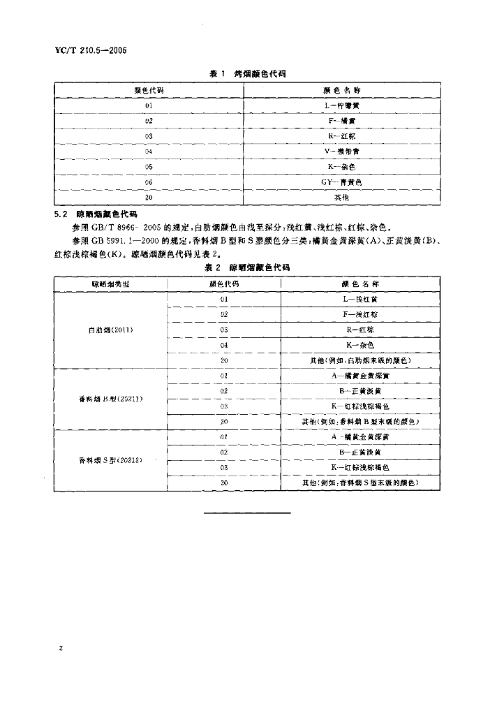 YC/T 210.5-2006 烟叶代码 第5部分:烟叶颜色代码