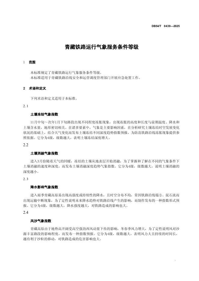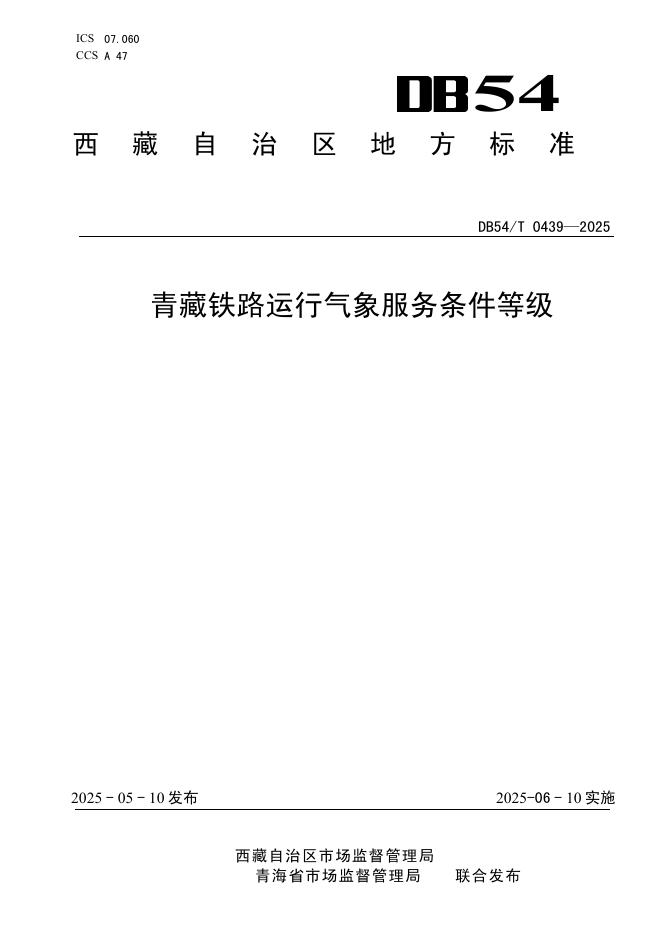 DB54/T 0439-2025 青藏铁路运行气象服务条件等级
