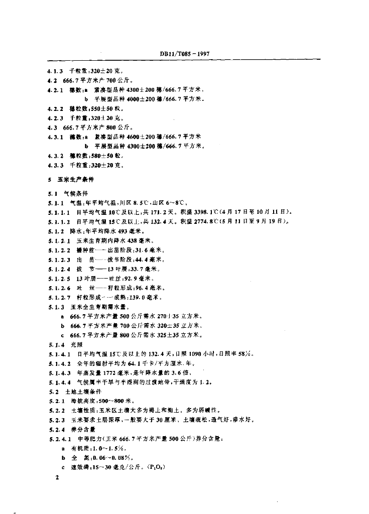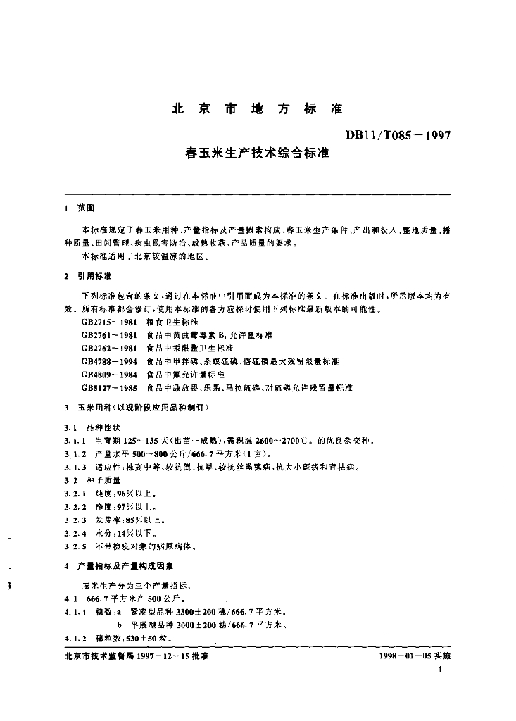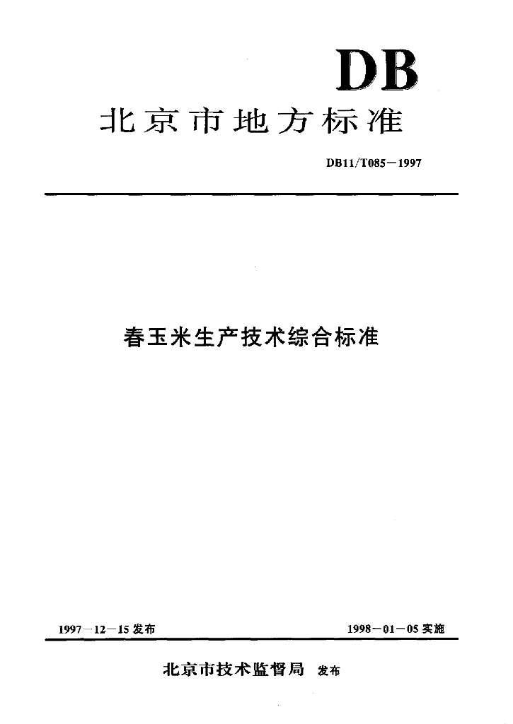 DB11/T 085-1997 春玉米生产技术综合标准