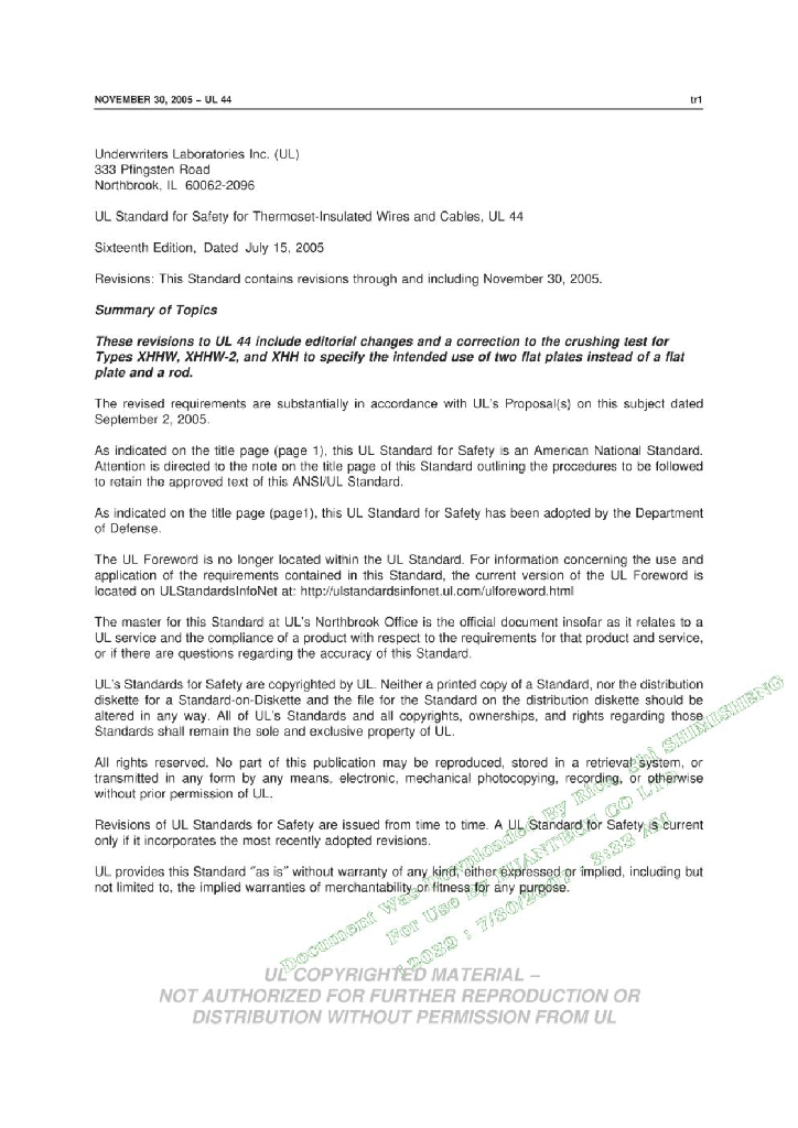 UL 44-2005 热绝缘线和电缆 热固性绝缘电线电缆