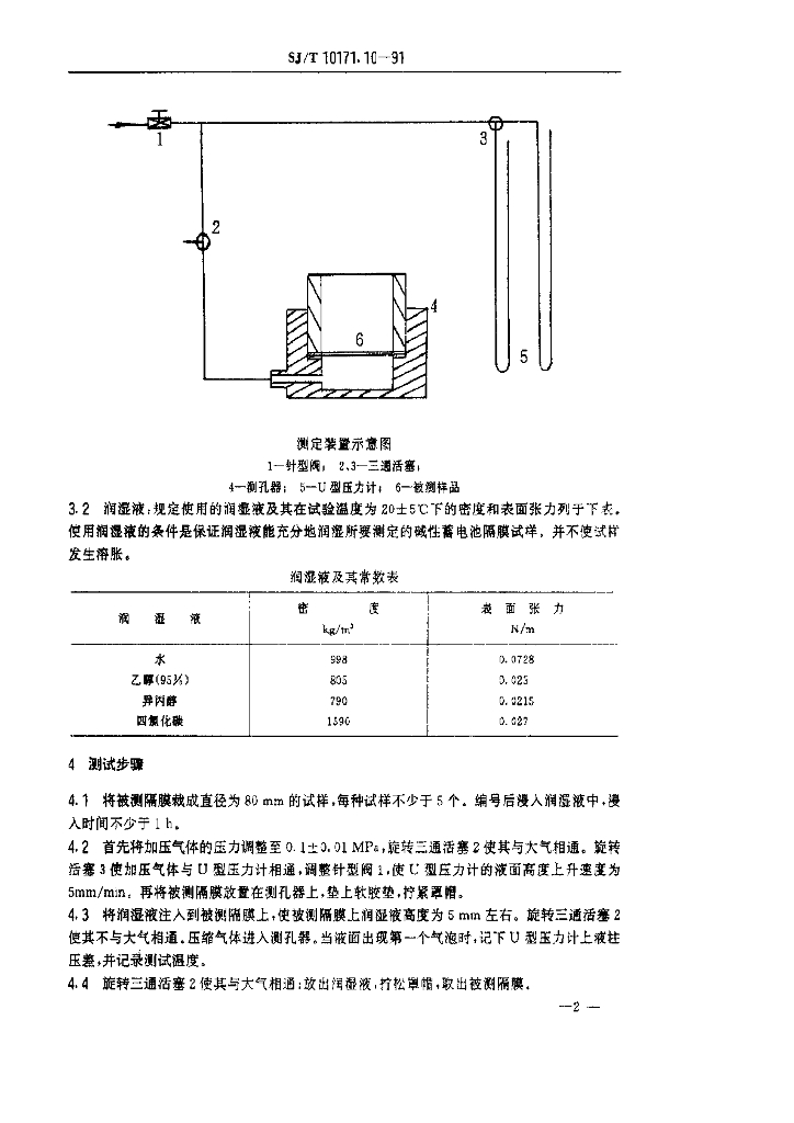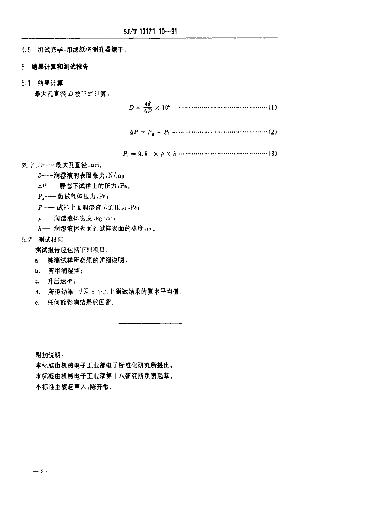 SJ/T 10171.10-1991 隔膜最大孔直径的测定 气泡试验法